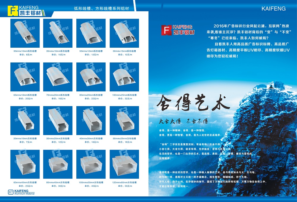 凱豐鋁材以其優(yōu)良的品質(zhì),良好的綜合性能和周到的服務(wù),贏得了廣大客戶和社會(huì)各界的青睞。為工業(yè)自動(dòng)化設(shè)備、機(jī)械防護(hù)設(shè)備、廣告、裝飾領(lǐng)域提供廣闊的設(shè)計(jì)空間。公司持續(xù)的質(zhì)量改進(jìn)作為企業(yè)的永恒目標(biāo),形成以“勤奮改變世界、誠信贏得世界、品質(zhì)提升世界、服務(wù)感動(dòng)世界、科技創(chuàng)造世界、竟博挑戰(zhàn)世界、智慧征服世界”具有凱豐嘉特色的企業(yè)文化,使公司具有強(qiáng)大的凝聚力和發(fā)展后勁。